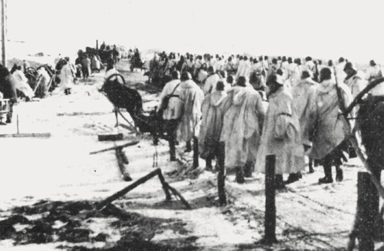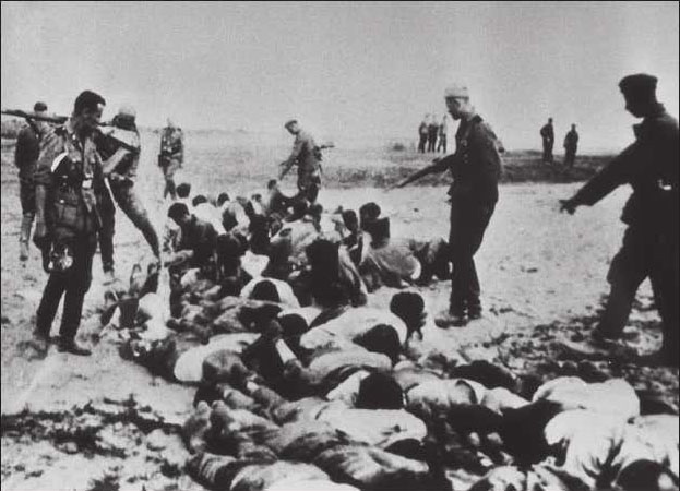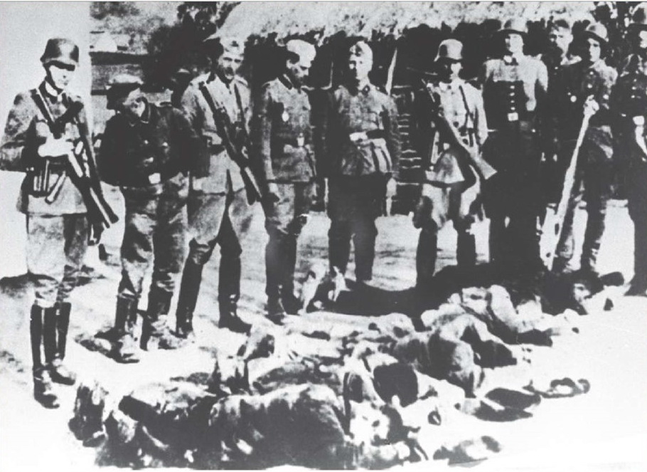 Карательный отряд возле тел, расстрелянных